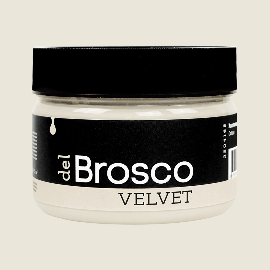 Ультраматовая акриловая краска del Brosco Velvet идеально подходит для любых интерьерных работ. Она с лёгкостью преобразит внешний вид вашей мебели, дверей, кухонного гарнитура, стен и различных декоративных предметов интерьера. Краска del Brosco обладает потрясающей текучей консистенцией, она легко разносится по поверхности кистью или валиком. Большинство цветов перекрывает подложку с одного слоя, но для наиболее равномерного покрытия рекомендуем наносить 2-3 тонких слоя, а не один плотный.
