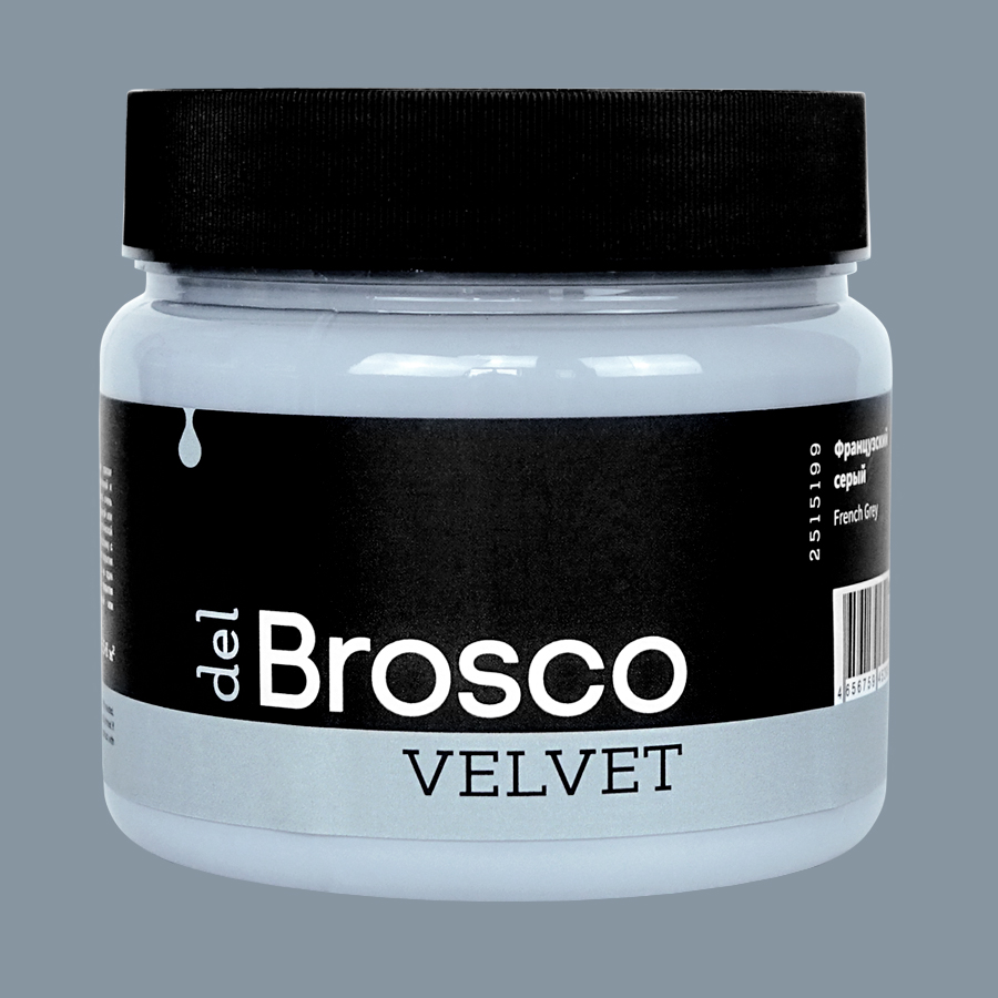 Ультраматовая акриловая краска del Brosco Velvet идеально подходит для любых интерьерных работ. Она с лёгкостью преобразит внешний вид вашей мебели, дверей, кухонного гарнитура, стен и различных декоративных предметов интерьера. Краска del Brosco обладает потрясающей текучей консистенцией, она легко разносится по поверхности кистью или валиком. Большинство цветов перекрывает подложку с одного слоя, но для наиболее равномерного покрытия рекомендуем наносить 2-3 тонких слоя, а не один плотный.