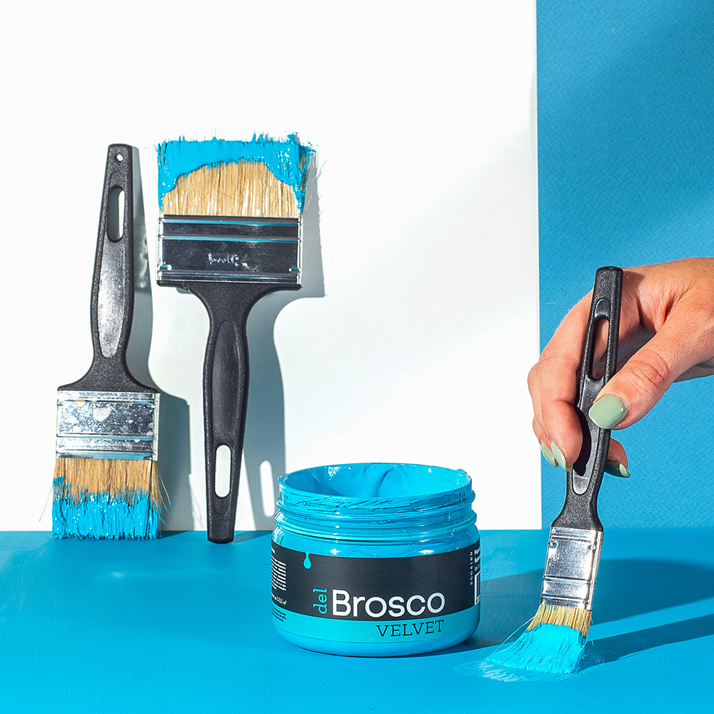 Ультраматовая акриловая краска del Brosco Velvet идеально подходит для любых интерьерных работ. Она с лёгкостью преобразит внешний вид вашей мебели, дверей, кухонного гарнитура, стен и различных декоративных предметов интерьера. Краска del Brosco обладает потрясающей текучей консистенцией, она легко разносится по поверхности кистью или валиком. Большинство цветов перекрывает подложку с одного слоя, но для наиболее равномерного покрытия рекомендуем наносить 2-3 тонких слоя, а не один плотный.