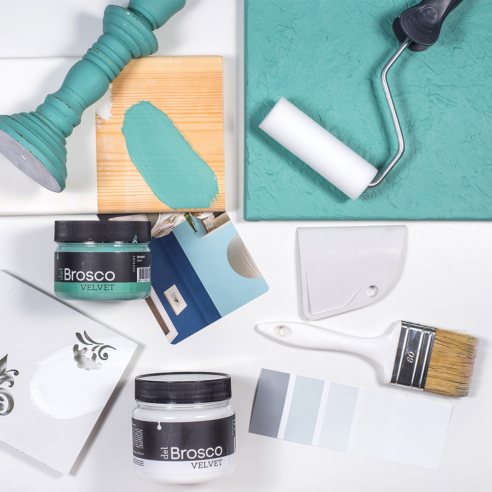 Ультраматовая акриловая краска del Brosco Velvet идеально подходит для любых интерьерных работ. Она с лёгкостью преобразит внешний вид вашей мебели, дверей, кухонного гарнитура, стен и различных декоративных предметов интерьера. Краска del Brosco обладает потрясающей текучей консистенцией, она легко разносится по поверхности кистью или валиком. Большинство цветов перекрывает подложку с одного слоя, но для наиболее равномерного покрытия рекомендуем наносить 2-3 тонких слоя, а не один плотный.